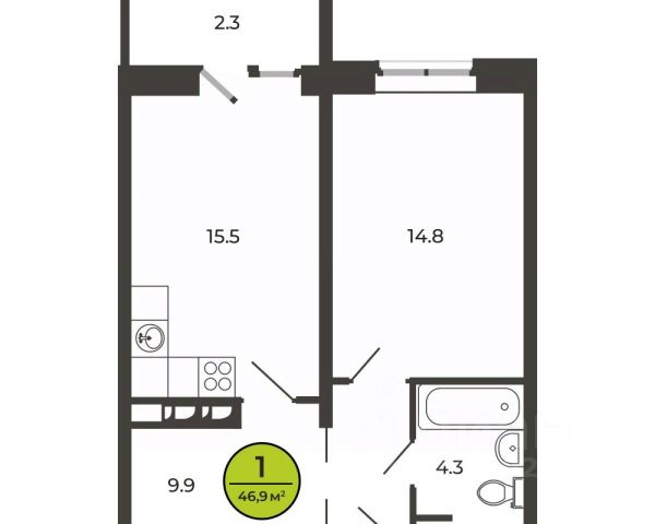 Продаётся 1-комнатная квартира в строящемся доме (Строение 2), срок сдачи: II-кв. 2026, общей площадью 46.88 кв.м., на 17 этаже. Жилой комплекс "Цветной бульвар" от застройщика "СЗ Цветной бульвар" в городе Брянск на улице Романа Брянского.