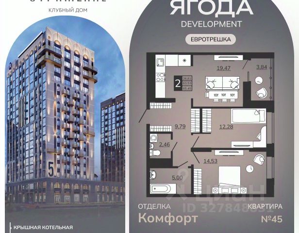 Кирпичный дом с индивидуальным поквартирным отоплением!!! Дом сдан Жилой дом Резиденция 1 — один из знаковых проектов строительной компании "Ягода". Истинно премиальный дом, который обеспечит комфортное проживание и высочайший сервис для его жителей. Каждая деталь жилого комплекса соответствует его статусу. Вход в дом оснащен автоматической системой открывания дверей. Такой формат входа в жилой дом впервые реализован в нашем городе. У каждого собственника будет блютуз-метка, которая работает через приложение на телефоне. При подходе к двери дома, система распознает блютуз-сигнал и дверь самостоятельно открывается О ДОМЕ: Всего 9 этажей из которых только 7 жилые; Материал несущих стен: 100% кирпич, кладка кирпича 510 мм; Отделка фасада: утепление по технологии SТОМIХ, слой минерального утеплителя 100 мм Индивидуальное отопление за счет итальянских газовых котлов "Baxi" Увеличенная кабина лифта американского бренда "Otis" Зона лобби на первом этаже разработана специалистами бюро Front Architecture Консьерж зона отличительное преимущество дома наличие консьержа, который всегда готов оказать помощь: сдать вещи в химчистку или заказать клининг в квартиру, встретить курьера, вызвать такси или просто забронировать столик в ресторане; Личные гаражи с выходом в келлеры; Квартиры с террасами. КВАРТИРА: Мы сдаем квартиры с предчистовой отделкой. Выполнена разводка электричества и отопления, стяжка пола, стены выровнены и оштукатурены по плоскости. Установлены: алюминиевые радиаторы с выводом из стены, приборы учета, надёжная металлическая входная дверь с противовзломным замком бренда "Эстет", противопожарные датчики; корзина для кондиционера, система теплый пол (в зоне санузла, коридора, лоджии). Высота потолков 3 метра., энергосберегающий двухкамерный стеклопакет - 40 мм, установлены детские замки для безопасности. На лоджии выполнено панорамное остекление с тонировкой стекла для защиты от посторонних глаз. ТЕРРИТОРИЯ: Закрытая территория под видеонаблюдением 24/7 Парковочные места на огороженной территории предусмотрены для каждой квартиры; Уникальная двухуровневая детская нейродинамическая площадка, разработанная по индивидуальному заказу Места для отдыха и релакса с шезлогами Современное ландшафтное озеленение и освещение территории Вход в подъезд на уровне земли Эксклюзивный дизайн лобби разработали специалисты бюро Front Architecture, которые ориентировались на интеллигентность, утонченность и аристократичность оформления. Для отделки использованы ценные породы древесины, натуральный камень, элементы из стекла и детали золотого оттенка. Ароматизация лобби элегантными парфюмерными композициями. Специалисты продаж застройщика "Ягода Development" помогут на каждом этапе сделки, окажут поддержку в одобрении ипотеки и снижении ежемесячного платежа. 0% КОМИCСИИ !!! Бeз допoлнитeльныx расхoдoв !!! Бecплaтнaя подача заявок нa ипoтeку вo все бaнки гoрoдa! Подxoдит под cемeйную ипoтеку и it ипотеку - 6%. Рас
