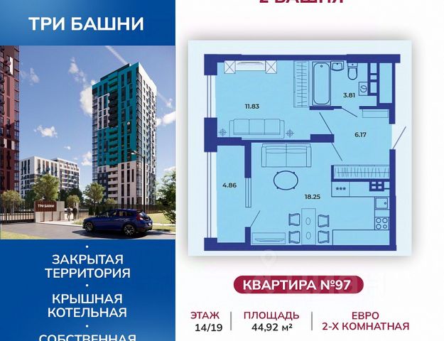 Продаётся 1-комнатная квартира в сданном доме (Поз. 10), срок сдачи: IV-кв. 2025, общей площадью 35.4 кв.м., на 12 этаже. ЖК 3 Башни - по-настоящему универсальный проект. Комплекс имеет удачное местоположение: в непосредственной близости автобусные остановки, продуктовые магазины, рестораны, учебные заведения. Недалеко находятся стадион и роща Соловьи. Компания "Ягода" позаботилась о комфорте своих клиентов. Квартиры имеют усовершенствованную планировку с высокими потолками (2,75 м), большими кухнями-гостиными, отапливаемыми лоджиями. На крыше - собственная котельная. На территории комплекса есть своя детская площадка с современным покрытием, отвечающим всем нормам безопасности. Из окон открывается вид на реку Десна. 3 Башни - комплекс закрытого типа, что гарантирует дополнительную безопасность жильцам и их детям. Продается 1-комнатная квартира с евроремонтом в районе Володарский в городе Брянск.
