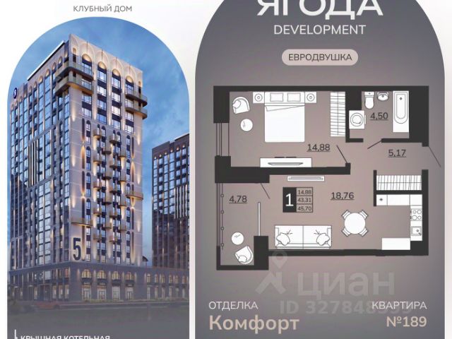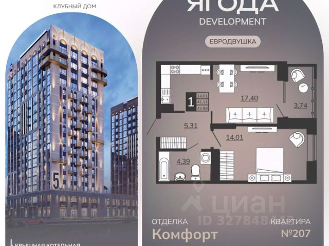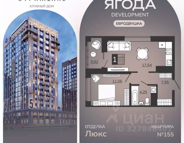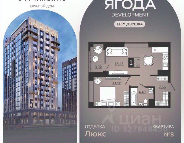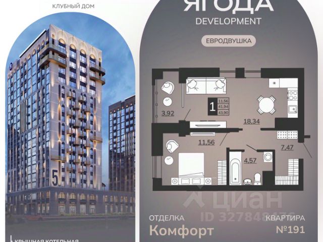 1-комнатные квартиры в жилом комплексе ОтражениеЖК «Клубный дом «Отражение»
