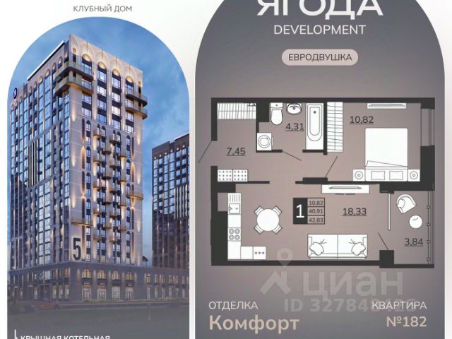 • ✓ В базе Циан 97 1-комнатных квартир в Брянске в ЖК Отражение
