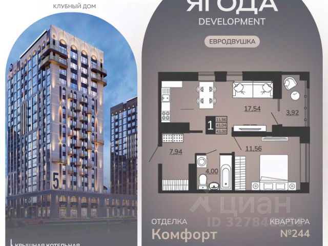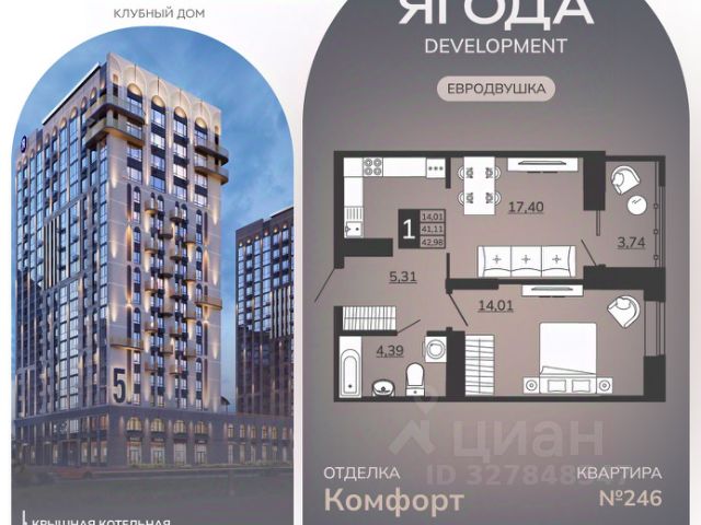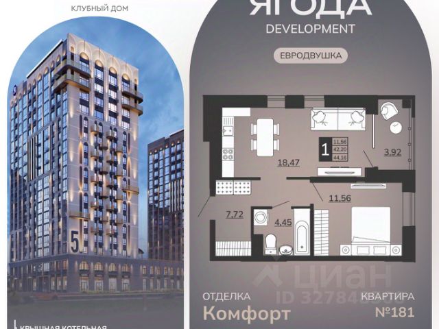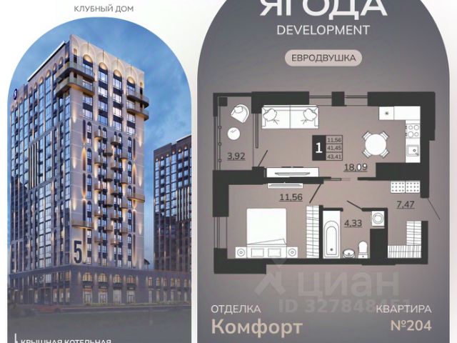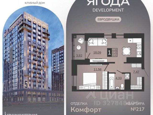 • ✓ Минимальная площадь: 41,6 м²
