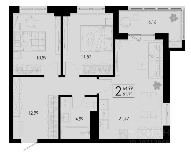 Продаётся 2-комнатная квартира в строящемся доме (Строение 2), срок сдачи: II-кв. 2026, общей площадью 59.9 кв.м., на 15 этаже. Жилой комплекс "Цветной бульвар" от застройщика "СЗ Цветной бульвар" в городе Брянск на улице Романа Брянского.