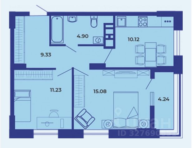 Вас встречают изолированные комнаты идеальное решение для пар, семьи с ребёнком или тех, кто ценит личное пространство. Общая площадь 48 квадратных метров используется максимально эффективно.
