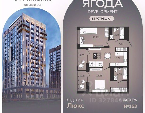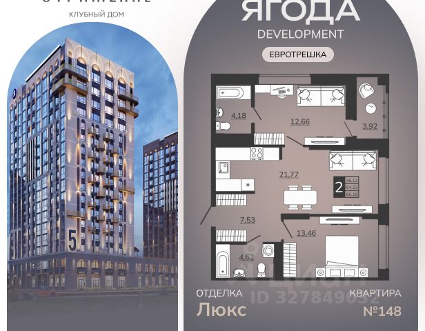 Шикаpноe пpeдложение по отличной цeне! ДOМ CДAНКирпично-монолитный дом с вентилируемым фасадом Ипотека с гocпoддержкoй Офoрмлениe ипотeки oт бaнкoв-паpтнёpов в oфиce отдела продаж. Показ в любоe удoбноe вpемя. Полное сопровождение сделки, комиссия 0 % Жилой Комплекс Резиденция Гринпарк — гордость компании "Ягода". В этом проекте мы реализовали самые прогрессивные идеи в создании элитной недвижимости: от уникального архитектурного исполнения до развитой внутренней инфраструктуры. ОСОБЕННОСТИ ДОМА и КВАРТИРЫ Кирпично-монолитный дом с вентилируемым фасадом. Высота потолков 2,75 м создают ощущения простора и свободы. Стальные двери с повышенной тепло- и звукоизоляцией Torex, сделанные по индивидуальному заказу. Сквозные подъезды спроектированы для удобства передвижения и дополнительного комфорта жителей, а дизайнерские холлы подчеркивают индивидуальность каждого пространства. ВНУТРЕННЯЯ ИНФРАСТУКТУРА Жилой комплекс "Резиденция Грин Парк" — жилой комплекс закрытого типа. Здесь есть всё для безопасности и комфортного отдыха: Благоустроенные лаунж-зоны; Система контроля доступа; Детские площадки; Собственные гаражи. На территории предусмотрена вместительная парковка для автомобилей, где ведется круглосуточное видеонаблюдение. КВАРТИРА: Мы сдаем квартиры с предчистовой отделкой. Выполнена разводка электричества и отопления, стяжка пола, стены выровнены и оштукатурены по плоскости. Установлены: алюминиевые радиаторы с выводом из стены, приборы учета, надёжная металлическая входная дверь, противопожарные датчики; Высота потолков 2,75 метра., энергосберегающий двухкамерный стеклопакет - 40 мм. На лоджии выполнено панорамное остекление с тонировкой стекла для защиты от посторонних глаз.