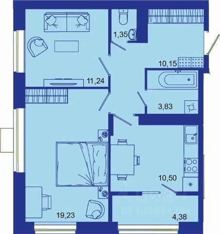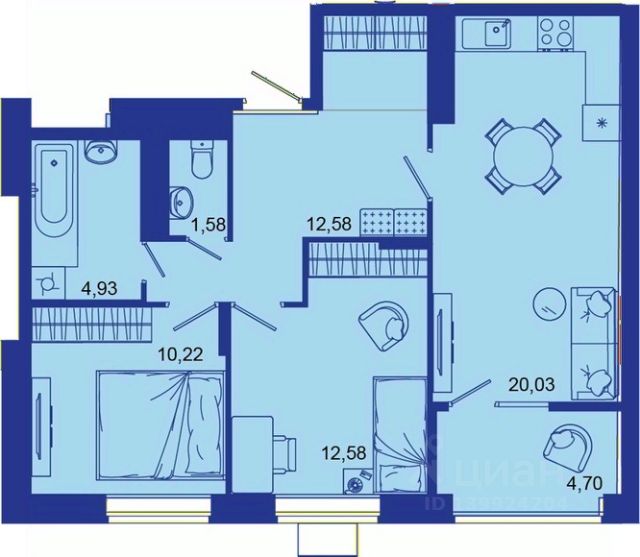• ✅ Минимальная площадь: 34,4 м²