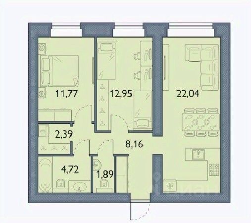 Большая кухня-гостиная и отдельная спальня;