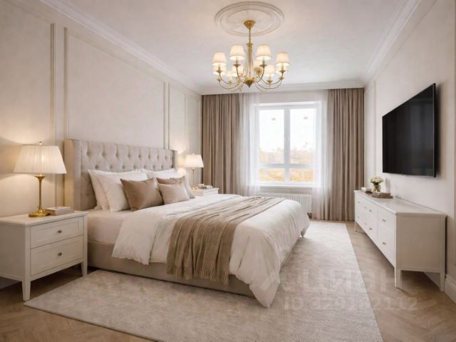 Главная спальня 13,3 м² — тихая, уютная, для родителей. Место, где можно закрыть дверь и выдохнуть. Особый комфорт подарит двуспальная кровать king-size с матрасом Ascona