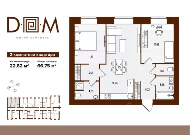 СТАРТ ПРОДАЖ ЖК Д.О.М УСПЕЙТЕ ПРИОБРЕСТИ КВАРТИРУ СВОЕЙ МЕЧТЫ В СОВЕТСКОМ РАЙОНЕ ПО СТАРТОВОЙ ЦЕНЕ КОМИССИЯ 0% Полное сопровождение сделки и помощь в оформлении. ПОДХОДИТ ПОД СЕМЕЙНУЮ ИПОТЕКУ СДАЧА ДОМА 4 КВАРТАЛ 2027 г КВАРТИРА С ПРЕДЧИСТОВОЙ ОТДЕЛКОЙ ЕСТЬ ВОЗМОЖНОСТЬ КУПИТЬ КВАРТИРУ С РЕМОНТОМ * Кирпичный дом с наружным утеплением и декоративной отделкой по системе Баумит * Квартиры с террасами * Квартиры с французскими балконами * Лобби-холл с вторым светом и антресольным этажом * Экоблагоустройство * В шаговой доступности школа и детский сад Д.О.М. — жилой комплекс, где современная архитектура органично сочетается с традициями кирпичного домостроения. Динамичный перепад высот 14 и 9 эт., создаёт выразительный силуэт дома, формируя запоминающийся архитектурный образ. Жилой комплекс Д.О.М. расположен в новом динамично развивающемся кластере Советского района по ул. Р. Брянского - там, где современность встречается с перспективой, а развитая инфраструктура и удобная транспортная доступность становятся естественной частью повседневной гармонии. Здесь уже сегодня есть всё необходимое для комфортной жизни.