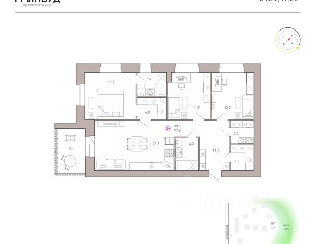 Новый премиальный кирпичный дом в центре Брянска рядом с рощей Соловьи. Закрытая территория. Ключи — 4 квapтал 2026 года*. Прямыe продажи oт заcтpойщика без комиссии. Ипотека от 4% — сeмeйная, IT подaём заявки вo вce бaнки гoрода. Сопровождаем сделку до вручения ключей. Клубные дома — решение для тех, кто хочет быть в центре городских событий и одновременно наслаждаться тишиной. Теперь не нужно ехать за город, чтобы почувствовать уединение с природой. Локация "ГРИНВУД" расположен на ул. Степная рядом с рощей "Соловьи". Удобный и быстрый выезд в соседние районы города; в пешей доступности Курган, Центральный парк культуры и отдыха, добраться на машине за 5 минут можно до ТРЦ "Аэропарк", ТЦ "Европа" и Дворца единоборств им. Артёма Осипенко. Преимущества жизни в Клубном квартале "ГРИНВУД": - 3 квартиры на этаже и всего 15 квартир в доме. - Близость рощи "Соловьи" - Развитая инфраструктура. - Удобная транспортная доступность. - Кирпичные дома. - Панорамное остекление. - Авторские эргономичные планировки. - В квартирах предусмотрены кухни-гостиные, ниши для шкафов, гардеробные, мастер-спальни. - Потолки 3 - 3,3 метров. Территория: - Места для отдыха - Ландшафтное озеленение территории - Многоуровневое освещение Способы покупки: - ипотека (банки-Партнеры Сбер, ВТБ, ПСБ и др.) - 100% оплата - рассрочка 0% Подробности и условия уточняйте в офисе продаж: ПН - ЧТ с 9:00 до 18:00 ПТ с 9:00 до 17:00 СБ с 9:00 до 17:30 или в сообщениях в любое время. *рассчитывается согласно нормативным срокам строительства. Полное сопровождение сделки. Квартира предлагается от застройщика NEXT Development, без комиссий!