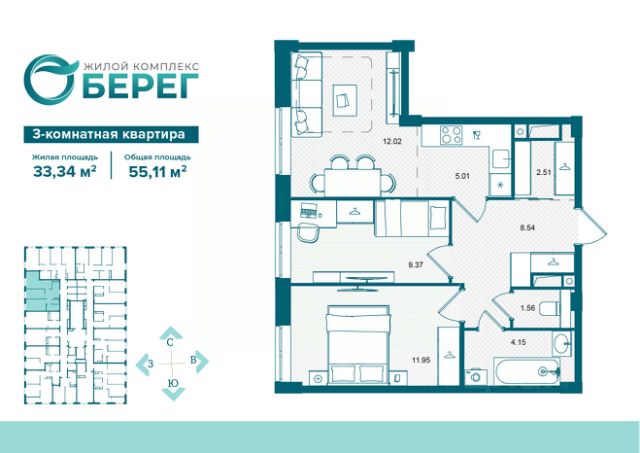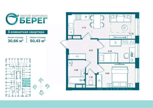 • ✅ Минимальная площадь: 50,4 м²