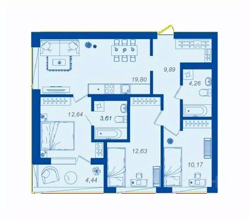 • ✅ Минимальная площадь: 44,4 м²
