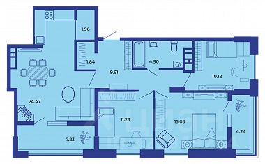 спальня и кухня могут быть объединены или разделены перегородками.