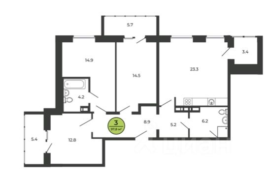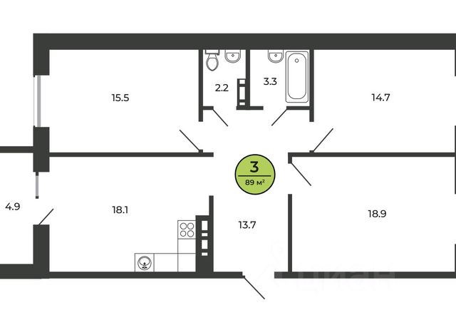 Общая площадь - 68,3 кв.м