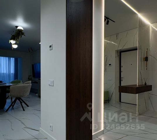 Дом сдан в 2023 году, ремонт сделан в конце 2024 года по индивидуальному дизайн-проекту. Делался максимально близко к визуализации, для себя, не на продажу, на материалах, технике, сантехнике и тд не экономили. В квартире индивидуальное отопление, теплые полы везде кроме спален, в спальнях радиаторы+теплые углы. Стены все выполнены под покраску, на полу и стенах уложен широкоформатный керамогранит, в спальнях на полу ламинат 12мм. Квартира светлая и теплая. Вся корпусная мебель и некоторая мягкая мебель приобретались на заказ. Техника на кухне встроенная Bosch (варочная панель, духовой шкаф, свч, посудомоечная машина на 60см), холодильник встроенный Gorenja (высокий 195см), ТВ в гостинной LG 65', ТВ в спальне LG 55'. Под раковиной установлен измельчитель Bort и фильтр на питьевую воду барьер, так же на вводе воды в квартиру установлены 2 фильтра - самопромывной и магистральный гейзер. Установлено много источников света с разными сценариями освещения. Межкомнатные двери и фурнитура ProfilDoors. Распашенка - спальня и лоджия с панорамным остеклением выходят на садовое общество, где активно идет застройка частными домами, и соответственно дом окна в окна уже не построят (из окна зелень, птички поют, шума нет), детская выходит во двор. Просторная кухня-гостинная 21м2 + лоджия 6,5м2, спальня и детская по 15,5м2. Санузел раздельный - туалет 2м2, ванная 4,4м2, также есть отдельный постирочный блок/гардеробная 3,2м2 со стиральной и сушильной машинами LG, в нем еще предусмотрена установка стеллажей и полок (фото проекта). Т.к. ребенок маленький, в детской не установлены стол и консоль (в проекте характеристики указаны). Сантехника в санузлах установлена от итальянского бренда Bohemia, унитаз и инсталляция Geberit, ванна из литьевого мрамора 180х80, на кухне раковина и кран от бренда Iddis, установлен гидролок на wifi с автономным аккумулятором и датчиками протечки в сан. узлах, постирочной и под кухней. На этаже в нашем крыле 3 квартиры, со своим закрытым тамбуром. Ежедневная уборка в подъезде и тамбурах, уход за территорией, много зелени.
