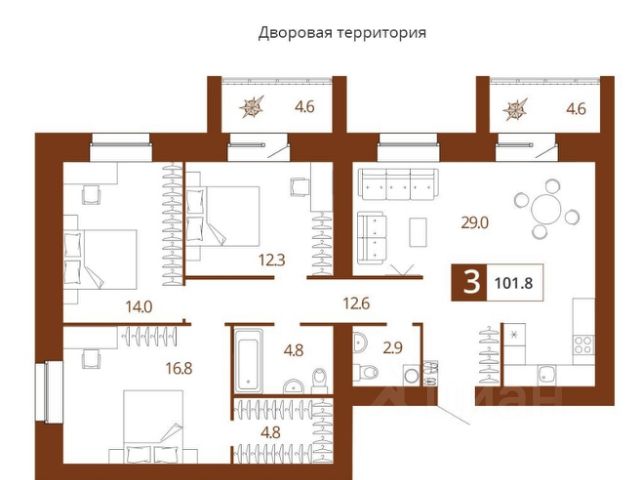 Продаётся 3-комнатная квартира в строящемся доме (Поз. 1), срок сдачи: III-кв. 2026, общей площадью 58.87 кв.м., на 1 этаже. Это комплекс жилых зданий комфорт-класса с огороженной территорией по всему периметру с системой безопасности и видеонаблюдением. Он расположен в экологически чистом месте, где открывается прекрасный вид на реку Десну - на первой береговой линии.