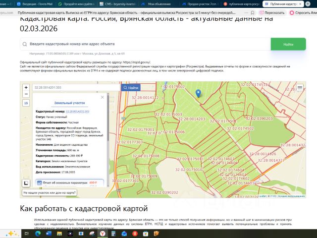 Продается земельный участок площадью 13 соток ( ЛПХ, земли населенных пунктов) в д. Стаево Брянского района( можно разделить на два участка - подъезд с двух сторон) . Участок прямоугольной формы , оформлен в собственность, проведено межевание, круглогодичный подъезд. Этот район активно застраивается, и на соседних участках ведется строительство новых домов и живут соседи постоянно, это создает атмосферу дружелюбного соседства и уверенности в том, что вы обретете комфортное окружение. Электричество - столб рядом с участком, рядом по дороге проходят газ, централизованное водоснабжение. Инфраструктура района развивается: в ближайшем населенном пункте есть все необходимое для комфортной жизни — магазины, больница, детский сад, школа, почтовое отделение и отделение банка. Для любителей природы в шаговой доступности находится лес и речка, что делает это место идеальным для спокойной загородной жизни. Не упустите шанс построить свой идеальный дом по ипотечной ставке 6% ( Семейная ипотека ) с аккредитованными подрядчиками в экологически чистом и спокойном месте( большой выбор проектов домов и короткие сроки строительства с использованием эскроу счетов) . Звоните ! Код пользователя: 700023 Номер в базе: 4405645