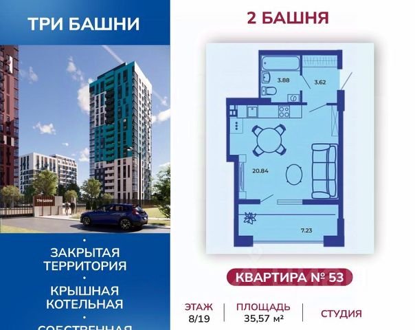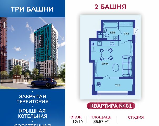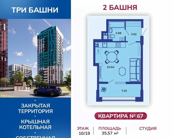 Жилой комплекс "Три башни" расположен у самой воды, на первой линии и является главной архитектурной доминантой района. Месторасположение ЖК является его особым преимуществом: с одной стороны - это современный, динамично развивающийся район с социально-значимой инфраструктурой и удобной транспортной развязкой; с другой стороны - "Три башни" удален от городской суеты и находится в непосредственной близости к природе. В шаговой доступности: остановка общественного транспорта, железнодорожный вокзал, магазины, медицинские кабинеты, салоны красоты, оздоровительные и спортивные заведения, центры дошкольного развития. В непосредственной близости от жилого комплекса расположены жизненно-важные объекты инфраструктуры: супермаркет, пекарня, кофейня, стоматология, зоомагазин, аптека. Компания "Ягода" позаботилась о комфорте своих клиентов. Квартиры имеют усовершенствованную планировку с высокими потолками (2,75 м), большими кухнями-гостиными, отапливаемыми лоджиями. На крыше — собственная котельная. На территории комплекса есть своя детская площадка с современным покрытием, отвечающим всем нормам безопасности. Из окон открывается вид на реку Десна. 3 Башни — комплекс закрытого типа, что гарантирует дополнительную безопасность жильцам и их детям.