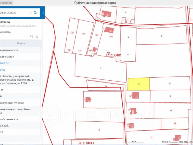 Продам земельный участок в п. Евтиховский От Брянска 40 км. Участок ровный, прямоугольный, граничит с бетонной дорогой, до поселка новая асфальтированная дорога. Участок пригоден для строительства: дома, усадьбы. Земля чернозем. Живописные пейзажи. Вблизи строятся коттеджи. Открыта продажа восьми участков, которые расположены на территории колхозного сада, на них расположены: дубы, березы и фруктовые деревья. Есть готовая газовая разводка и водопровод на каждый участок. В поселке есть продуктовый магазин -250 метров. Три раза в день, по вт. чет. и субботам ходит автобус Брянск-Карповка. В просёлке тишина, свежий воздух. Рядом находится лес. В километре лесное озеро. Торг на участке. Цена кадастровая. Разрешенное использование: основной вид - отдельно стоящие индивидуальные жилые дома от 1 до 3 этажей с приусадебными участками с возможностью содержания и разведения домашнего скота и птицы; вспомогательный вид - индивидуальные гаражи на придомовом участке на 1-3 легковых автомобиля; встроенный в жилой дом гараж на 1-3 легковых автомобиля; хозяйственные постройки; сады, огороды, палисадники, водоёмы, отдельно стоящие беседки и навесы, в том числе предназначенные для осуществления хозяйственной деятельности; теплицы, оранжереи индивидуального пользования; бани, сауны, бассейны индивидуального пользования, расположенные на приусадебных участках. В наличии есть другие участки, жилого и сельскохозяйственного назначения. Купить описанный объект можно, связавшись с продавцом по указанному контактному телефону. Также по данному номеру можно задать все интересующие вас вопросы, которые не нашли отражения в предложенном описании. Для просмотра звоните прямо сейчас! Лот 384