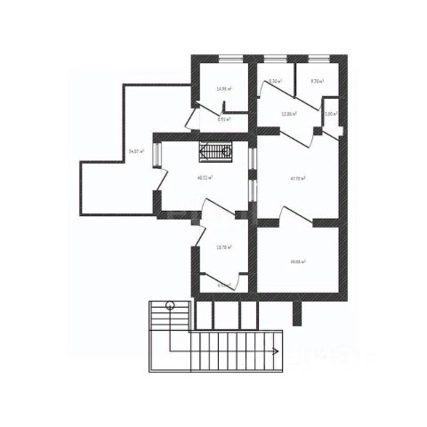 Открытые трассы первого и второго этажа - 33м2.