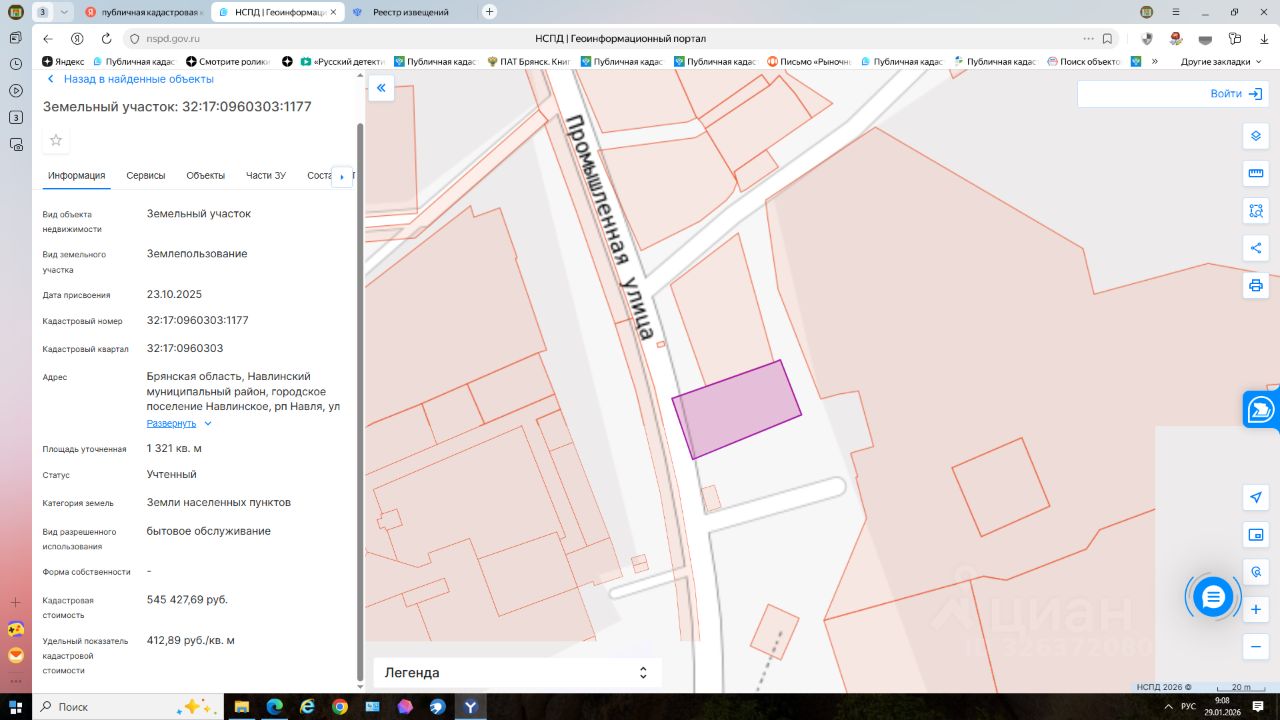 право аренды сроком на 5 лет на земельный участок из земель населенных пунктов с кадастровым номером 32:17:0960303:1177, местоположение: Брянская область, Навлинский район, Навлинское городское поселение, рп. Навля, улица Промышленная площадью 1321 кв.м., разрешенное использование: бытовое обслуживание;