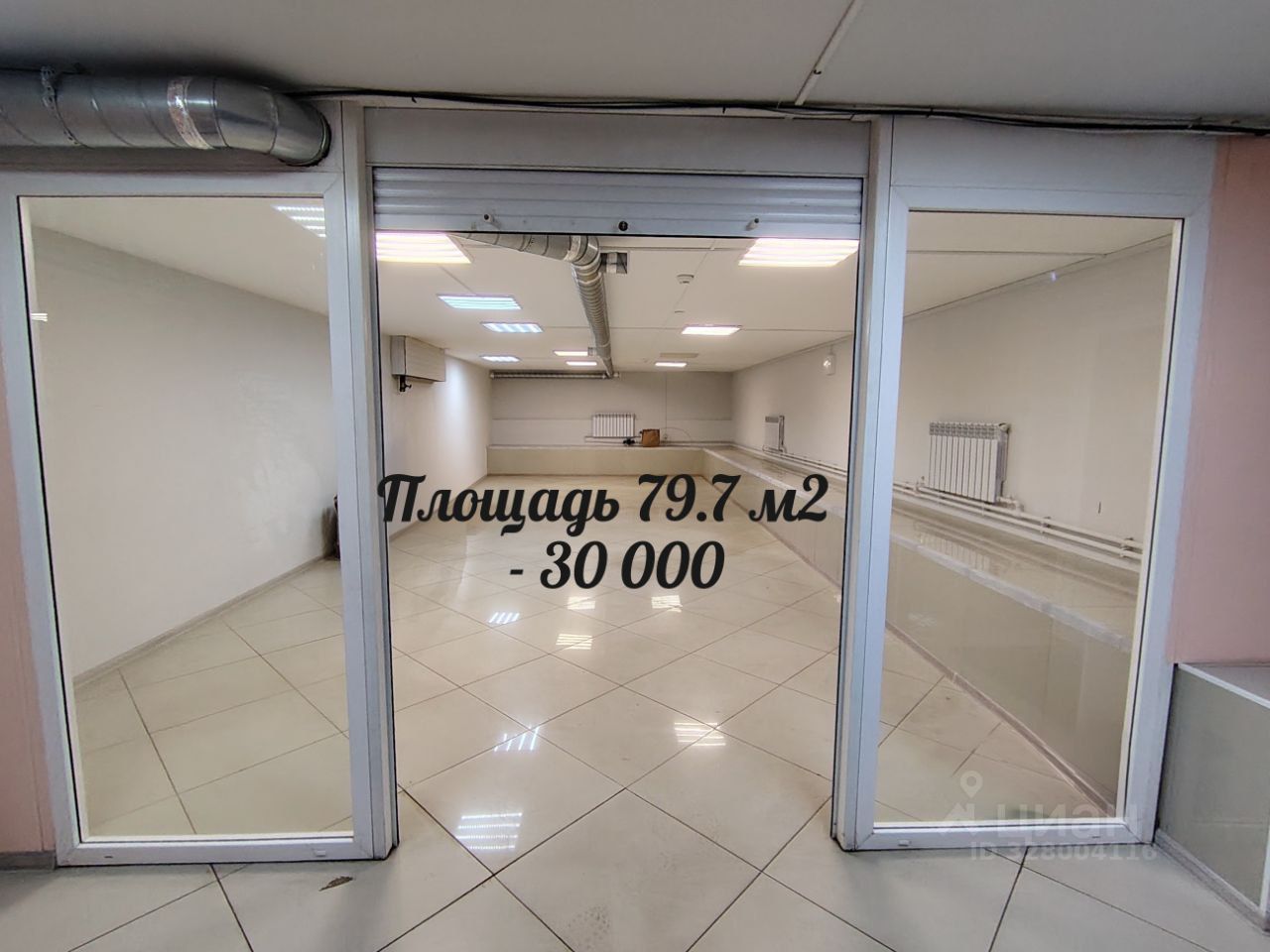 Площадь 79.7 стоимостью 30 000 руб находится у входа, первое помещение.