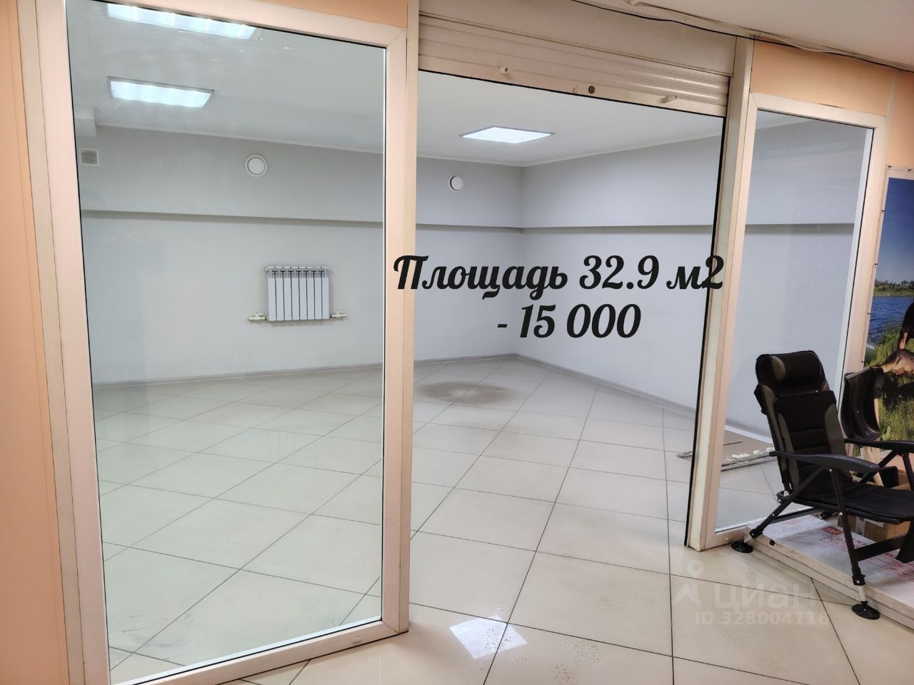Помещение 32.9 стоимостью 15 000 руб находится между рыболовным магазином и типографией.