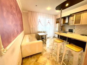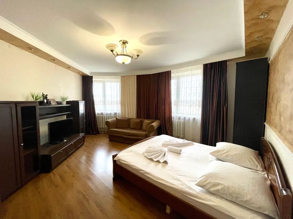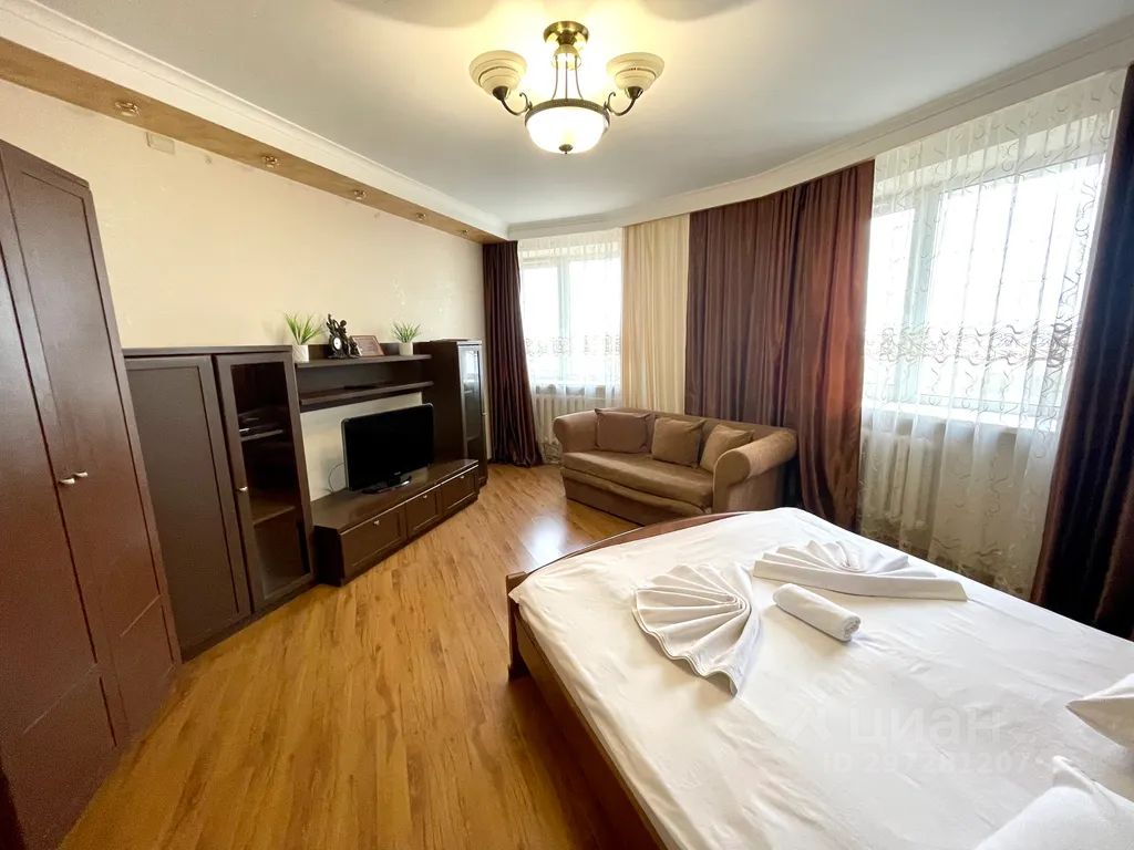 Описание квартиры от "Flats-line" в Брянске по ул. Красноармейская, 100. Однокомнатная квартира с современным ремонтом на 12 этаже с видом на центр города, установлена кухня с набором посуды, встроенной техникой. Спальные места: 2 (двуспальная кровать). Обратите, пожалуйста, внимание, что диван, изображенный на фото, не раскладывается.