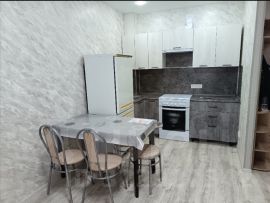 Квартира с евроремонтом, полностью готова для комфортного проживания. В наличии вся необходимая мебель и техника: на кухне установлены холодильник и мебельный гарнитур, в комнате есть телевизор и уютная обстановка. Также имеется стиральная машина. Санузел совмещенный, есть ванна. Лоджия добавляет дополнительное пространство для отдыха и хранения.