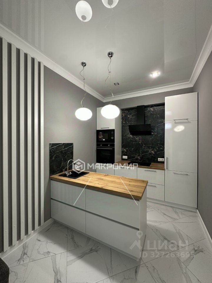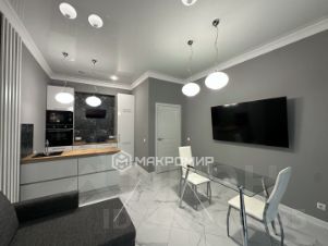 Квартира выполнена в современном дизайнерском стиле и полностью меблирована (французские окна с выходом с обеих комнат на лоджию, где открывется панорамный вид);