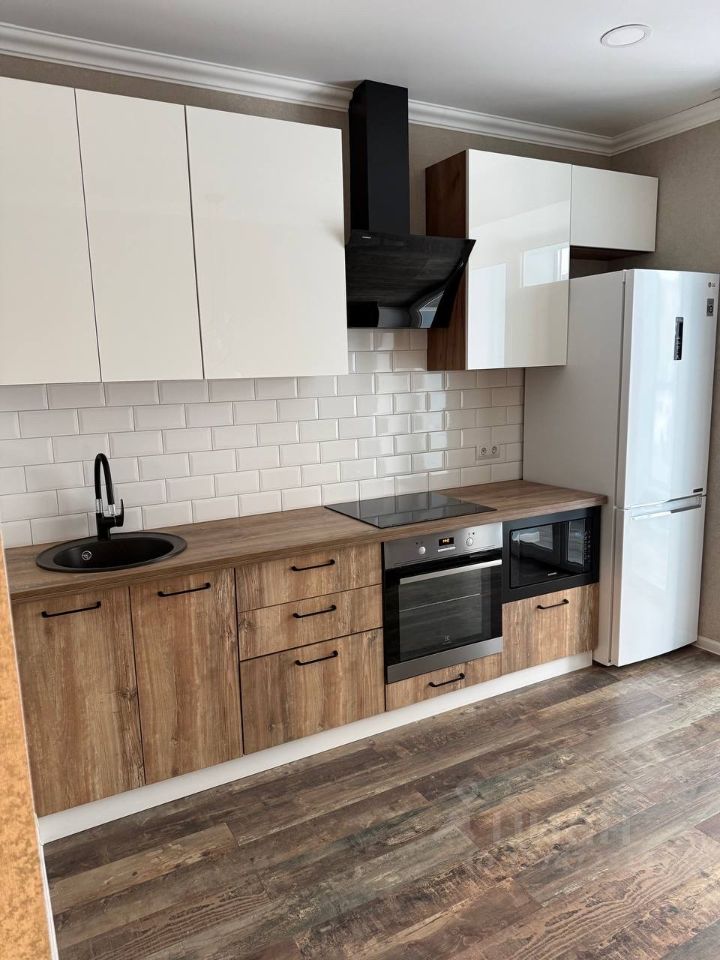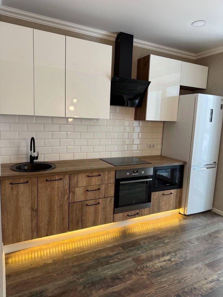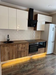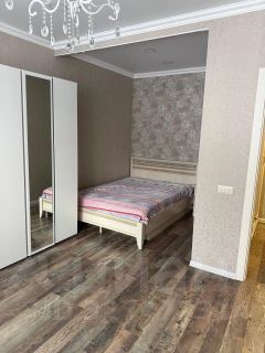 В квартире есть всё необходимое для комфортного проживания: современная мебель на кухне и в комнате, а также полный комплект бытовой техники — кондиционер, холодильник и стиральная машина. Санузел совмещённый, оборудован ванной, что добавляет удобства в повседневной жизни. Также имеется лоджия, где можно отдохнуть на свежем воздухе.