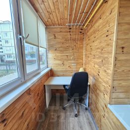 На лоджии оборудовано рабочее место. Также есть небольшая, но очень вместительная кладовая, которую можно использовать как гардеробную.