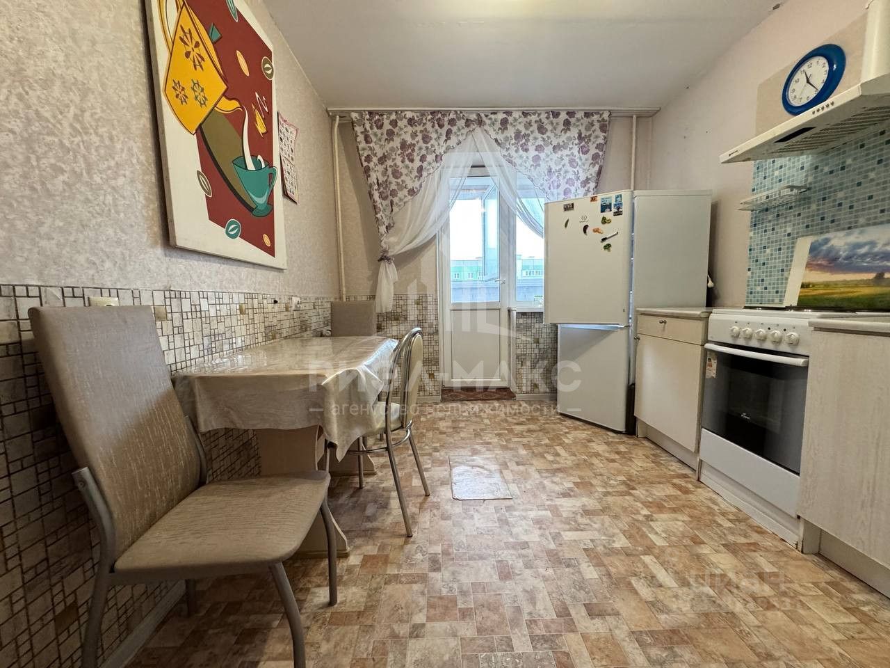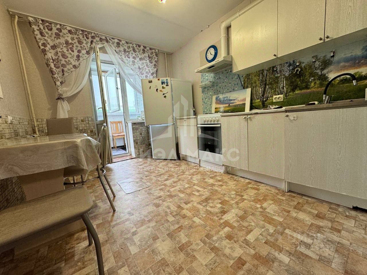 В квартире: кухонный гарнитур, холодильник, стиральная машинка, диваны, шкафы.