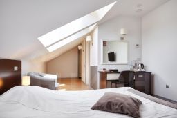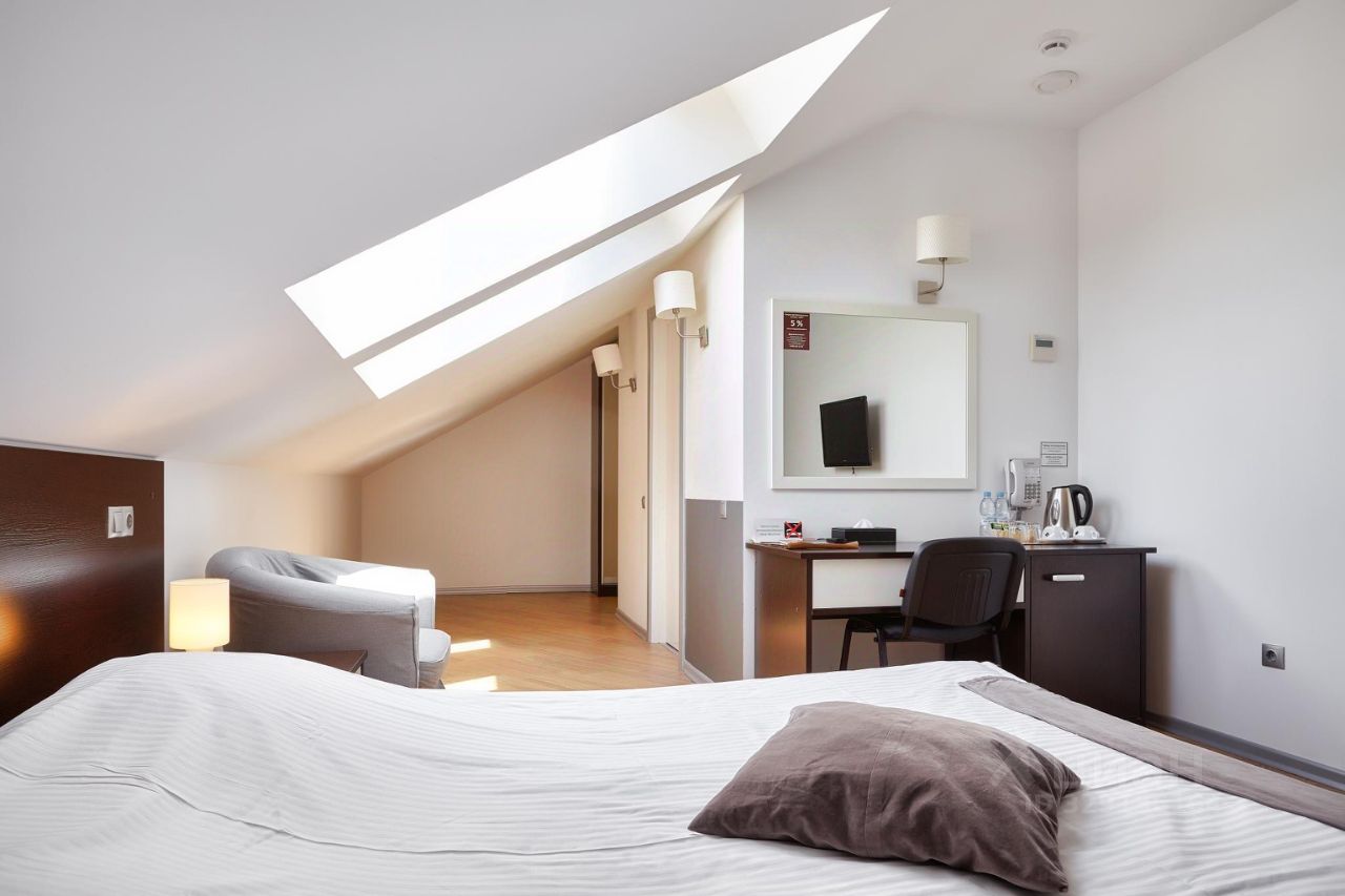 В номере: двуспальная кровать, гардероб, спутниковое TV, wi-fi, кондиционер, телефон, посуда, холодильник, чайник, сейф, рабочий стол, фен, душевая кабина, санузел, зубная паста, щетка, бритвенные принадлежности, гель для душа, шампунь, мыло, тапочки, комплект полотенец чай, кофе, сахар, шоколад.