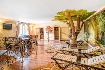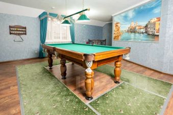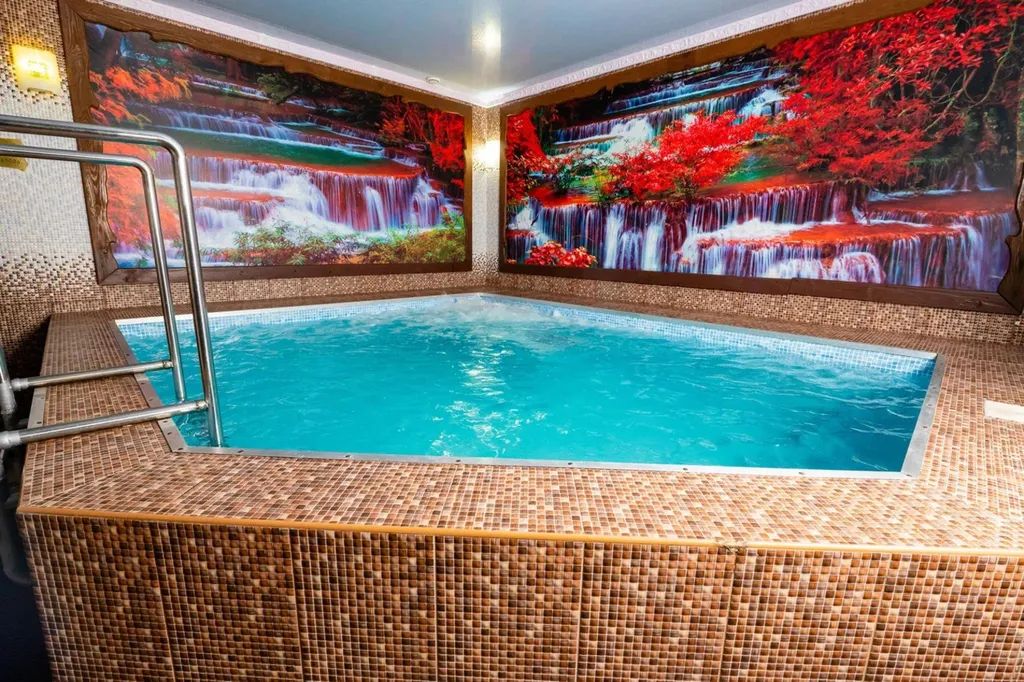 Большой коттедж площадью 350 кв. м с 2 спальнями, большим бассейном, финской и соляной саунами, большой гостиной с кухней и зоной отдыха.