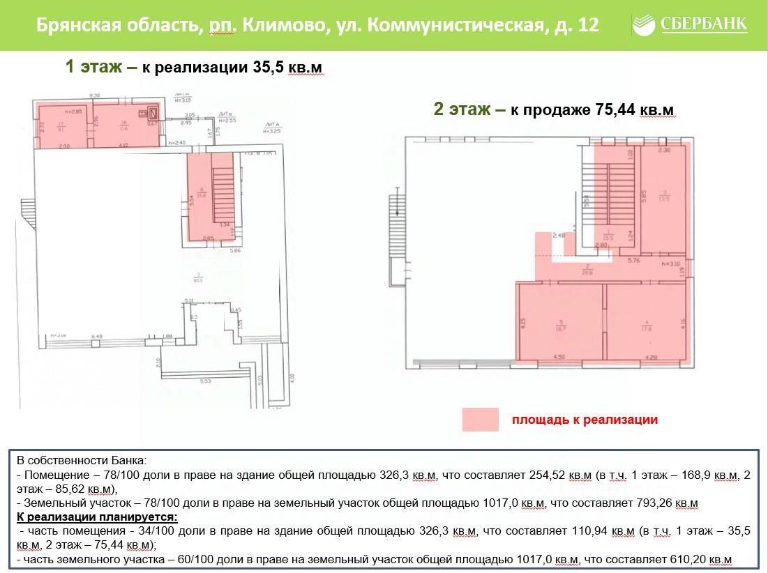 Сбер А предлагает к реализации часть нежилого здания, расположенного по адресу: Брянская область, пгт.Климово, ул. Коммунистическая, д. 12.