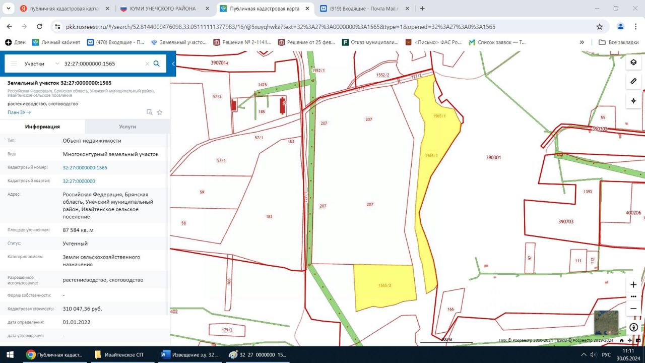 Продажа земельного участка из земель сельскохозяйственного назначения с кадастровым номером 32:27:0000000:1565, площадью 87 584 м2, с разрешенным использованием: растениеводство, скотоводство, местоположение: Российская Федерация, Брянская область, Унечский муниципальный район, Ивайтенское сельское поселение