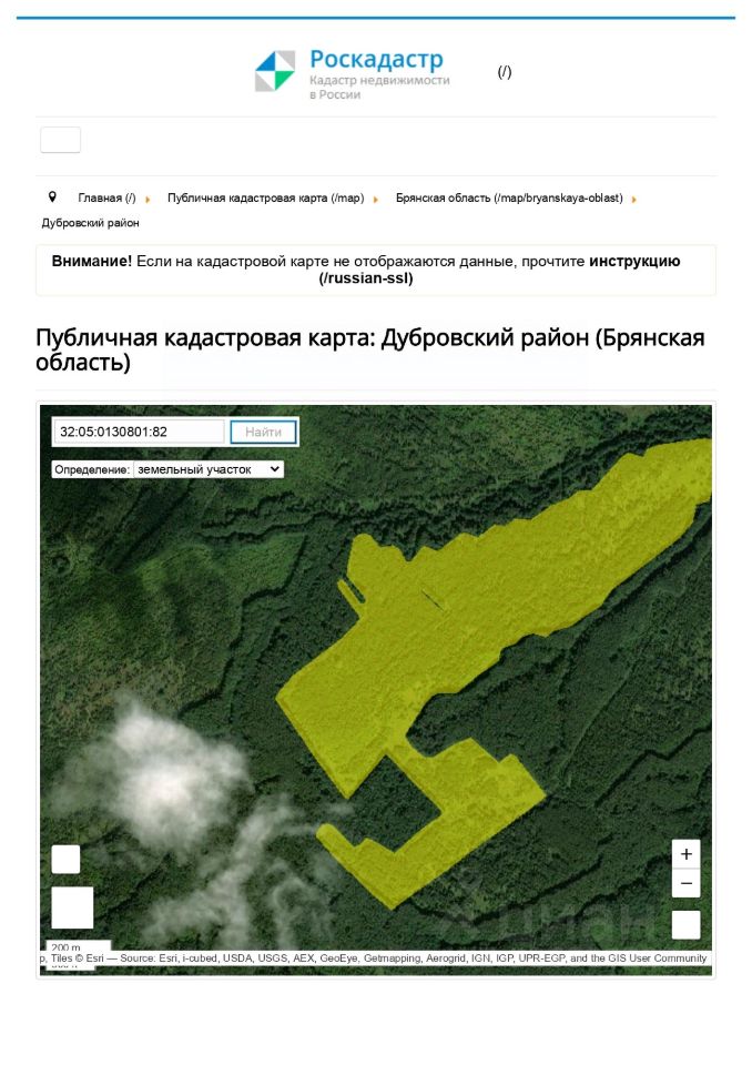 Земельный участок находящейся по адресу: обл. Брянская, р-н Дубровский, в границах СПК "Дубровский", в 2000 м. на юго-запад от н.п. Рековичи, площадью 641 841 кв.м., кадастровый номер 32:05:0130801:82. Целевое назначение и разрешенное использование: для сельскохозяйственного производства.