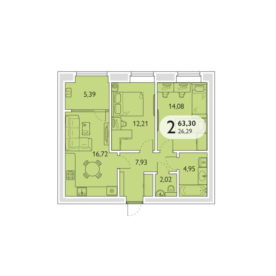 Общая площадь63,3 м²