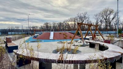 - современная нейродинамическая игровая детская площадки с безопасным покрытием, разделенная по возрастам.