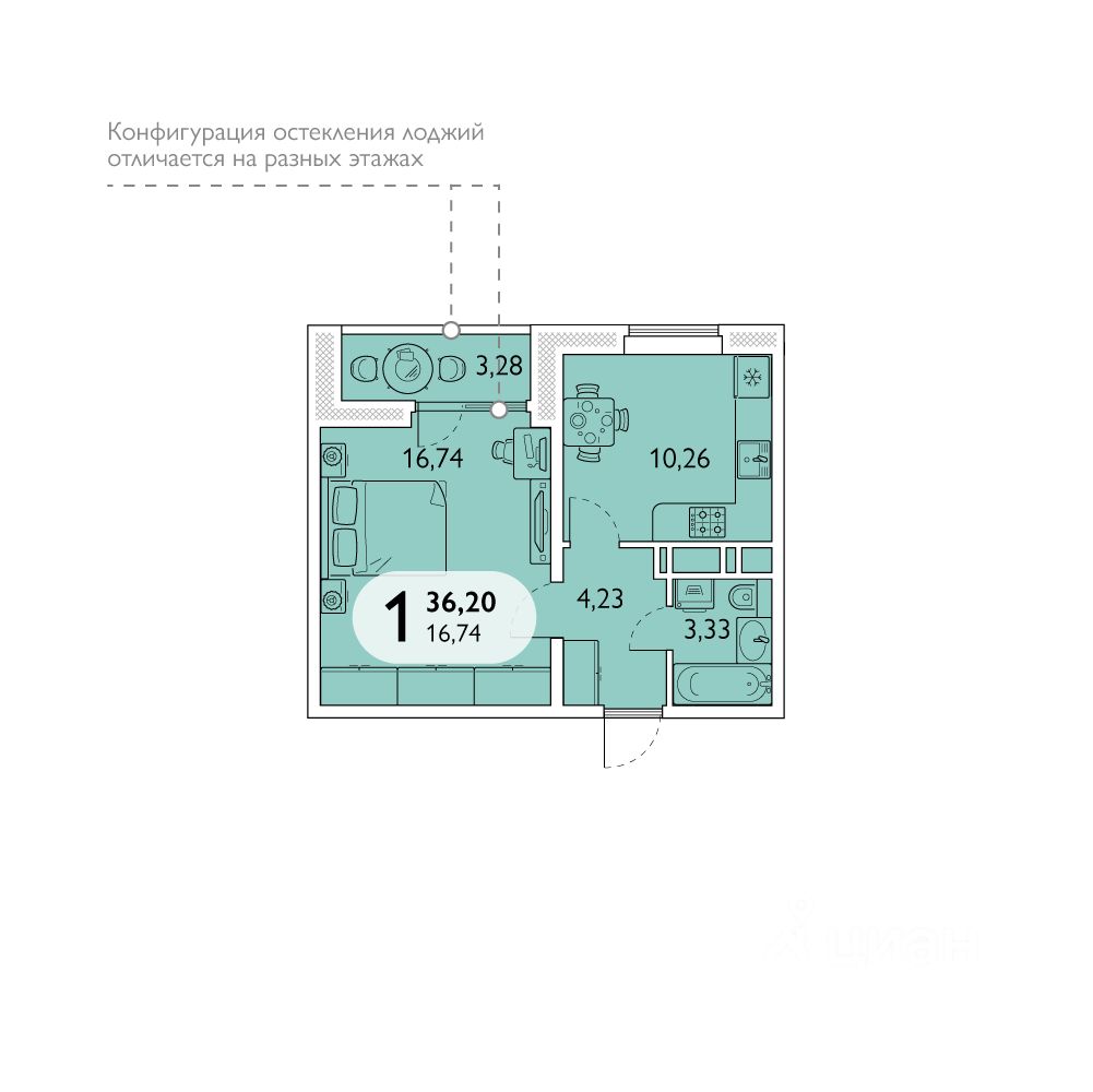 Продаётся 1-комнатная квартира в сданном доме (Поз. 7), срок сдачи: II-кв. 2025, общей площадью 36.2 кв.м., на 3 этаже.