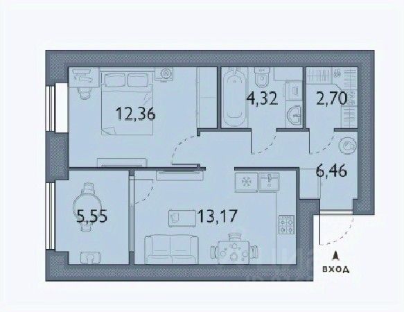Большая кухня-гостиная и отдельная спальня;