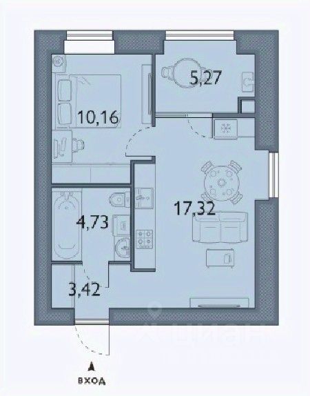 Большая кухня-гостиная и отдельная спальня;