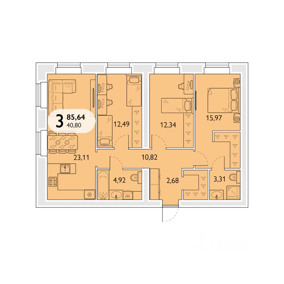 Общая площадь85,64 м²