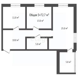 Общая площадь 72,7 кв. Лоджия утеплена и введена в площадь квартиры. Просторный холл-10 кв.м. Кухня-столовая 25 кв.м.