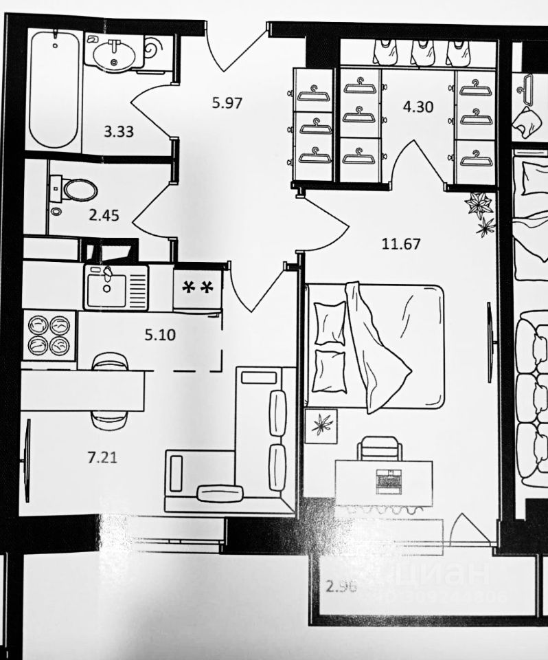 Продается новая квартира с современной планировкой, раздельный санузел, гардеробная, большая прихожая, зонированная кухня, балкон, окна ПВХ, счетчики, дом заселен.