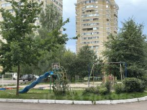 Двор тихий, закрытый, благоустроенный, с парковкой, спортивной и детской площадками, с просторными подъездами.