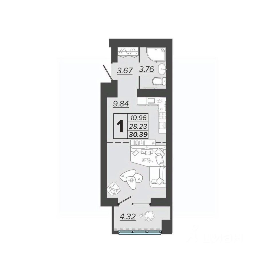 Общая площадь30,39 м²