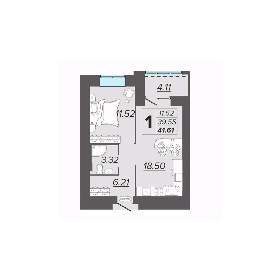 Общая площадь41,61 м²