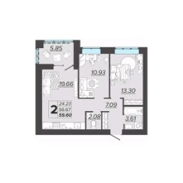 Общая площадь59,6 м²